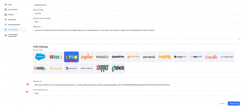 Step 2: Copy the webhook link and the open the CmyLead panel to paste the API key under Integration Panel.